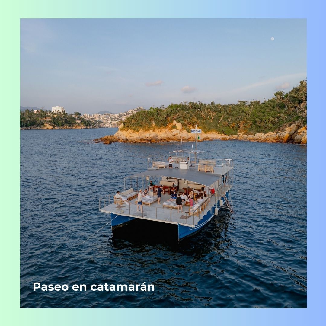 - Si vienes con amigos o familia, podemos añadir un emocionante viaje en catamarán al atardecer: brisa, música y un cielo pintado de colores.