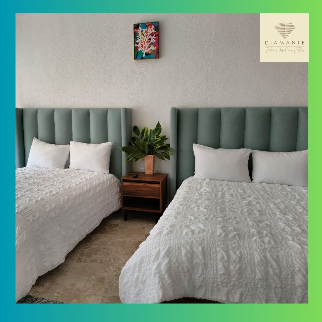 - Hospedaje en villas o suites en Diamante: Habitaciones cómodas, rodeadas de tranquilidad, alberca privada y a pocos pasos de las olas.